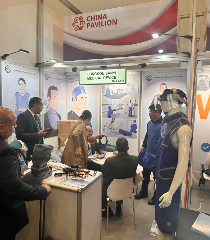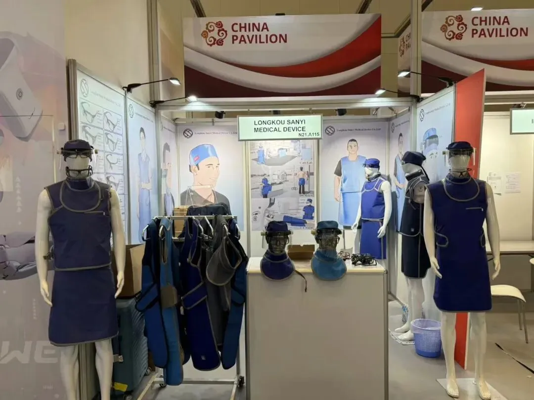 防护性能升级:采用更先进工艺的核心材料,铅微粒均匀分布,质地更柔软,射线防护更稳定,可阻挡 90%-95% 以上 X 射线,为医护人员筑起 “隐形铠甲”; 穿戴体验优化:创新轻量设计比重铅型减轻 34%,搭配防水防静电外层面料,兼顾防护性与舒适度,有效降低长期穿戴的职业损伤风险; 全场景覆盖:展出的防护装备体系包含长袖铅衣、防护围裙、铅帽、铅围领、铅眼镜等全套产品,适配介入手术、放射检查、工业探伤等多领域需求,完美满足国际市场的精细化防护需求。
