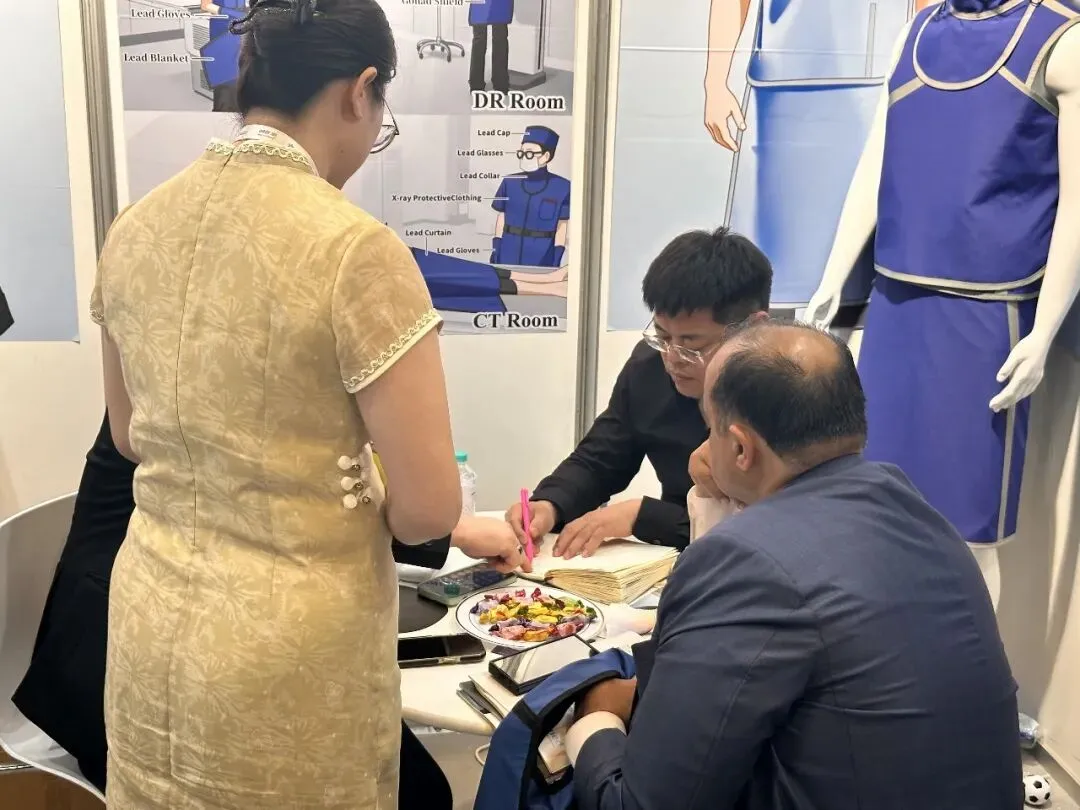 “中国产品的品质越来越让人惊喜!” 来自沙特的医院采购负责人在体验后表示,三益医疗的铅衣在防护效果与穿戴舒适度上完全媲美国际大牌,而高性价比的优势更具竞争力。现场工作人员通过专业的产品演示与技术讲解,让全球客户深入了解了三益医疗 “诚信筑品牌、品质创未来” 的经营理念,进一步扩大了品牌在国际市场的影响力。