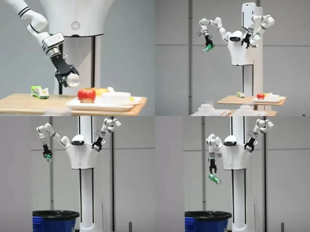 搭载千诀类脑大模型的机器人自主执行餐桌清洁任务(图源/企业)