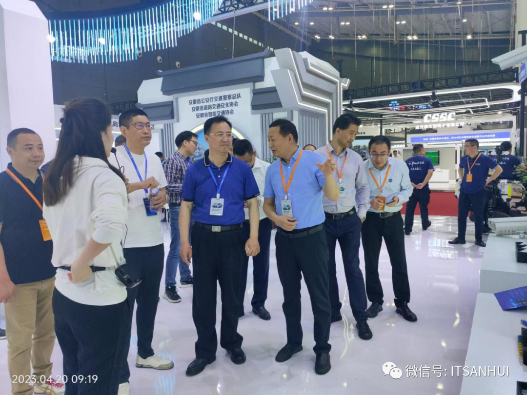 公安部交管局副局长王强,公安部道路交通安全研究中心主任、中国道路交通安全协会会长王长君,湖南省公安厅副厅长胡志文、湖南省公安厅交警总队总队长蒋建湘莅临展馆和安徽展区进行指导,并给予了高度评价,充分认可安徽省交管部门和智能交通企业在实战应用方面所做出的成绩。
