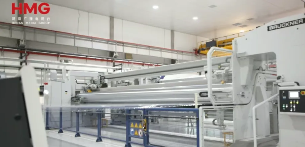 值得关注的是,作为河南省重点项目,该产业园的技术配置与产能规划深度匹配行业规模化发展趋势。1号厂房内新引进的8.7米宽幅PETG薄膜生产线,不仅刷新国内再生聚酯薄膜生产线宽幅纪录,更凭借行业领先技术实现 25% 的产能提升,成为行业高值化、规模化再生利用的新标杆。