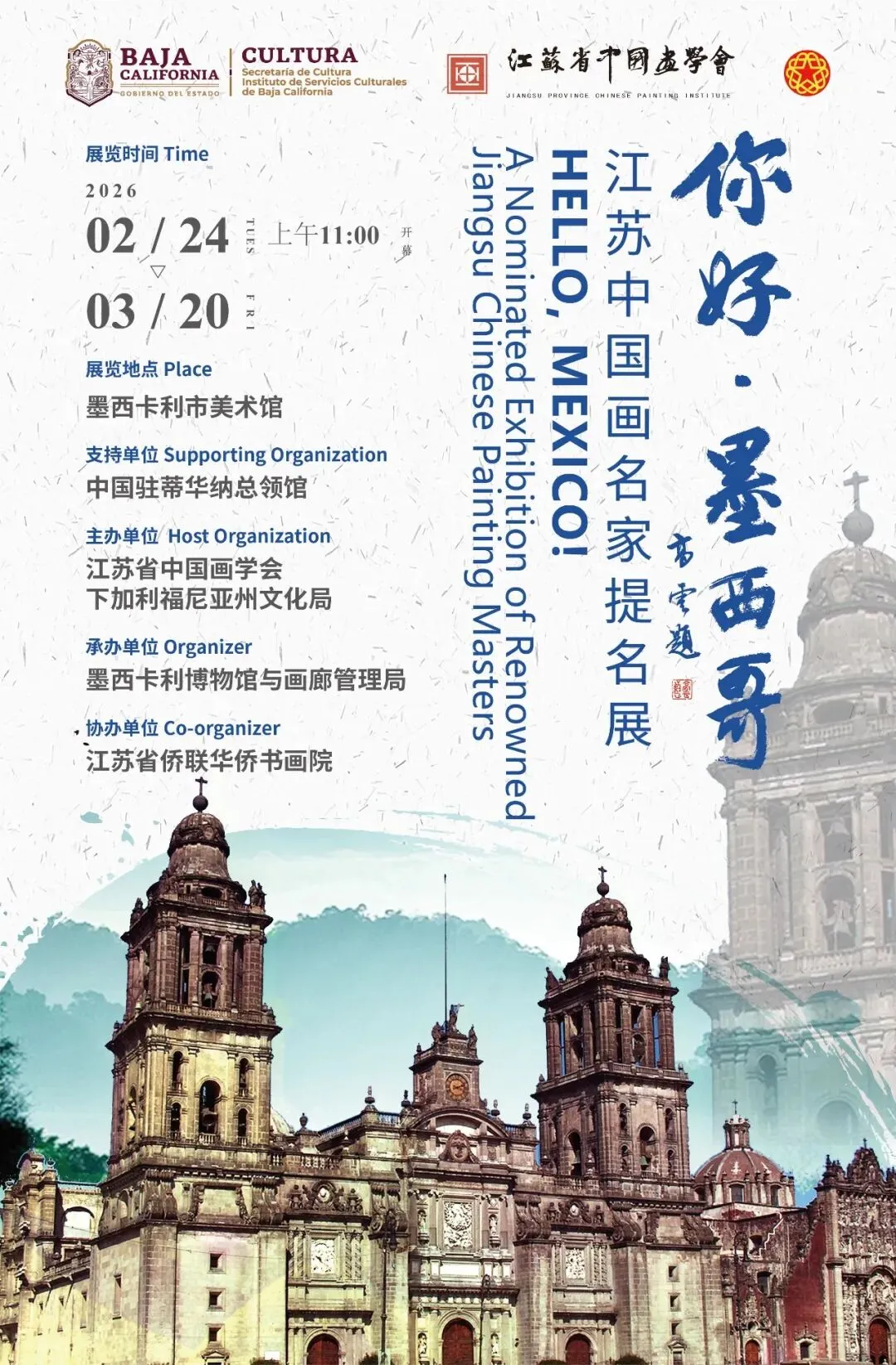 在全球化纵深发展的今天,文化是沟通的桥梁,艺术是联结心灵的精神纽带。本次展览由中国驻蒂华纳总领馆鼎力支持,江苏省中国画学会与墨西哥下加利福尼亚州文化局联合主办,墨西卡利城市美术馆精心承办,自筹备之初便肩负着搭建中墨文化桥梁、彰显中国传统书画艺术魅力的使命。我们以“你好”为温情序章,既是对异国文明的诚挚致敬,更是对文化互鉴的热切期许——愿借一幅幅浸润东方美学的丹青佳作,让墨西哥民众读懂中国精神的深邃内核,感受水韵江苏的独特气韵。