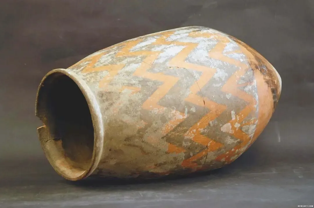 《水波纹彩陶尖底瓮》