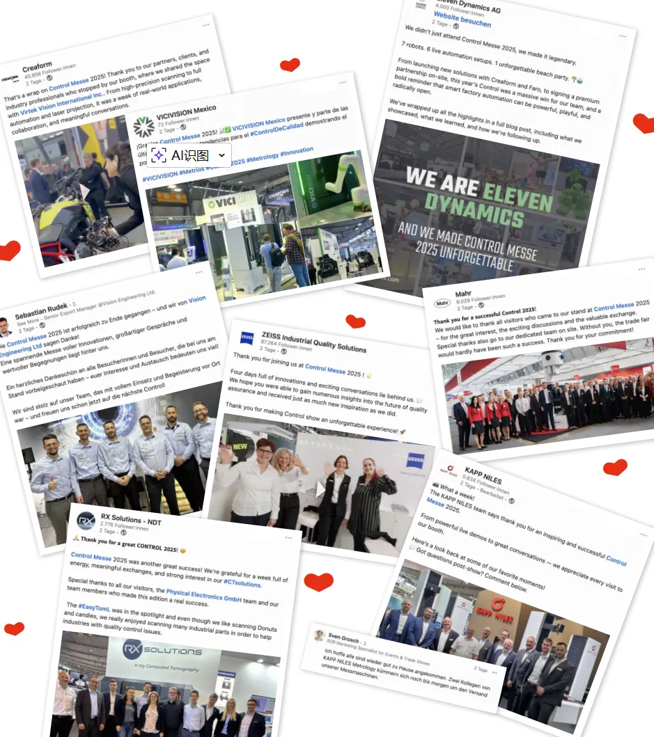 展会集中展示产品、工艺及服务质量管控方面的前沿解决方案,供应商与用户、参展商与专业观众在此平等交流,面对面探讨质量控制测量测试领域的最新发展成果与行业挑战。展会对质量控制测量测试领域的所有相关议题进行聚焦、清晰且系统化的展示,为行业投资决策提供了坚实的参考依据。作为一个历史悠久的展会,Control尤其希望支持新兴公司,并在欧洲领先技术区域中心地带的行业聚会上提供一个展示的平台。德国斯图加特国际质量控制测量测试展,是国际质量保证行业的窗口,是国际质量监督、质量保证市场的缩影,更是中国质量监督企业通往世界的最佳市场平台。