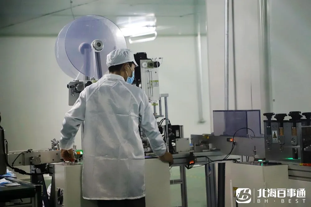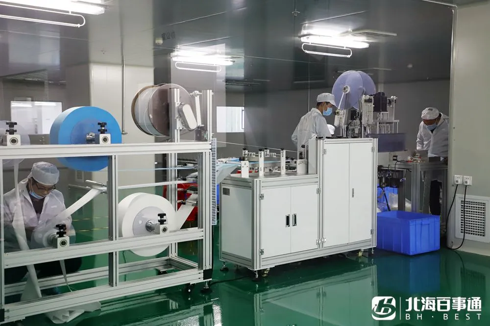口罩将经过卷料复合折叠,口罩成型、切断,鼻尖上料,耳带焊接,消毒等一系列的工序后生产成成品。