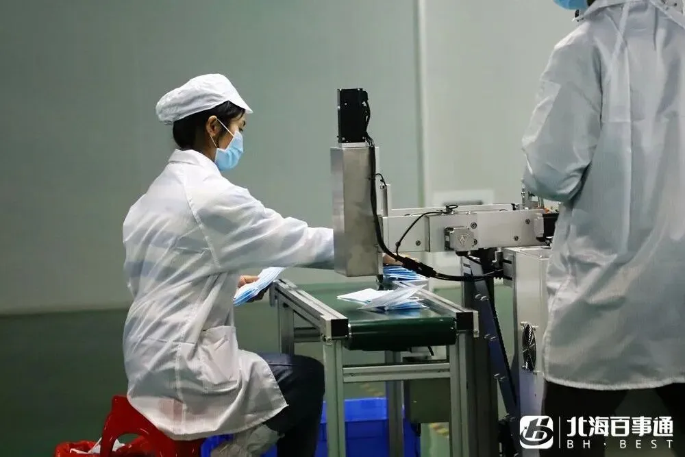相关负责人介绍,这个口罩项目包含12条全自动生产线,其余的将在3月下旬陆续安装完毕,预计可以达到86万只的日产能,项目调试完毕后将会送检,预计很快可正式投入生产流通。