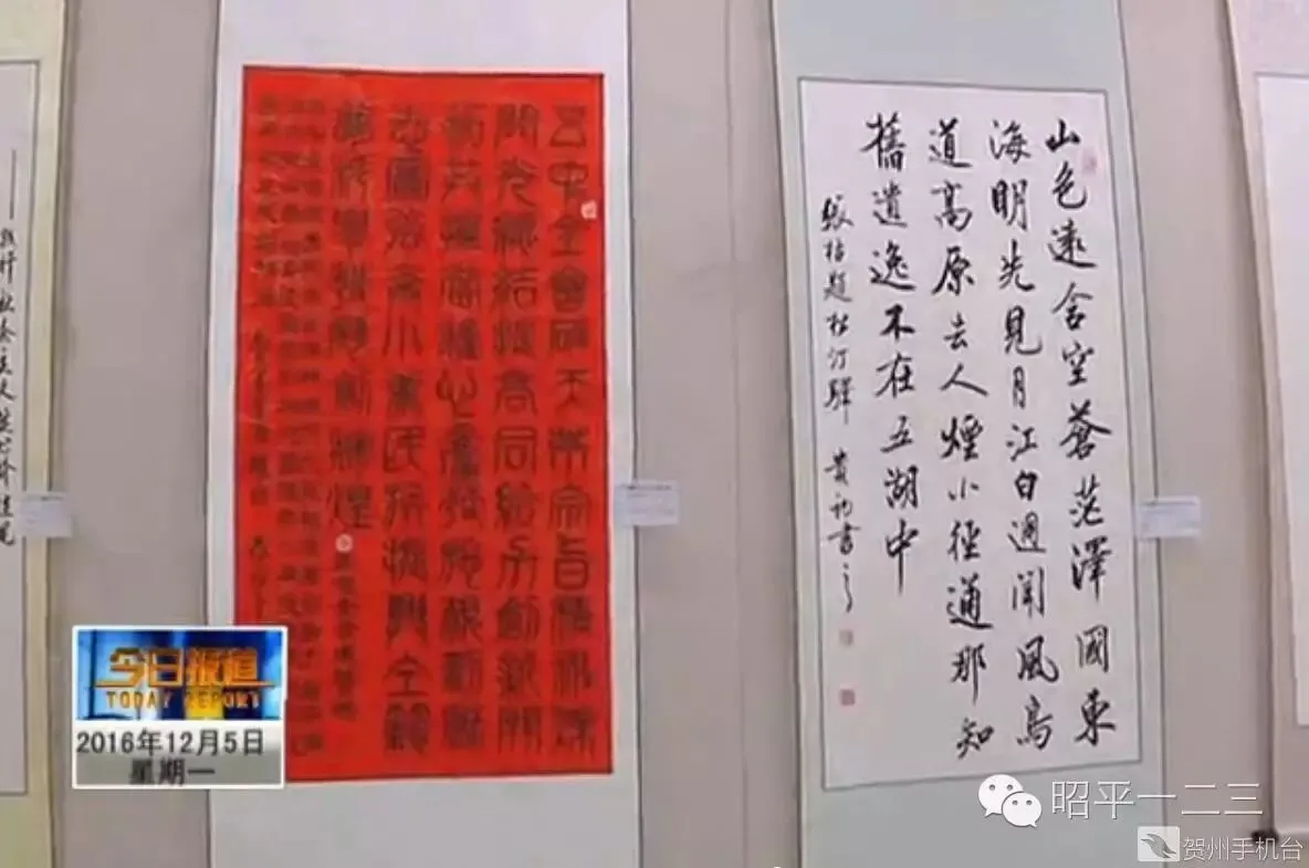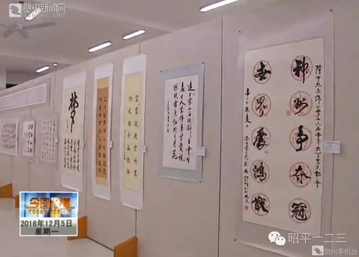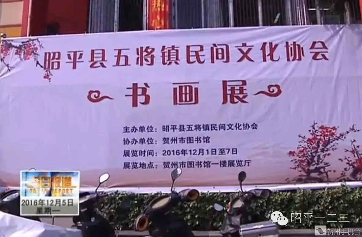 12月1日至7日,贺州市图书馆举办了名为五将镇民间文化协会书画展,展出的展品都是来自于昭平县五将镇村民们的作品,他们有8旬老翁,12岁儿童,也有外地读书的学子和工地上的民工,用一幅幅作品表达了对家乡民间文化的热爱。