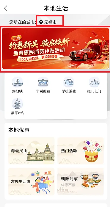 登录江苏银行App,进入“生活 - 本地生活(无锡)”,点击页面上方“约惠新吴·骏启焕新”活动入口图(即将上线),查看活动规则,点击领券按钮领取消费券。