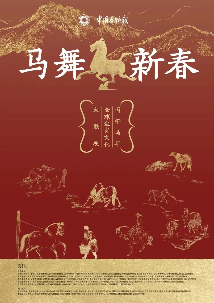 马,是华夏民族文化中象征奋进、忠诚与吉祥的经典意象,自古便是速度与力量的化身,承载着“马到成功”“龙马精神”的美好期许。本次展览汇集中国文物报社、生肖文化传播联盟60多家文博机构的数百幅马题材文物艺术品映像,以“古马遗珍”“艺马传神”“福马迎春”三个篇章,全景呈现马文化的历史底蕴与时代风采。