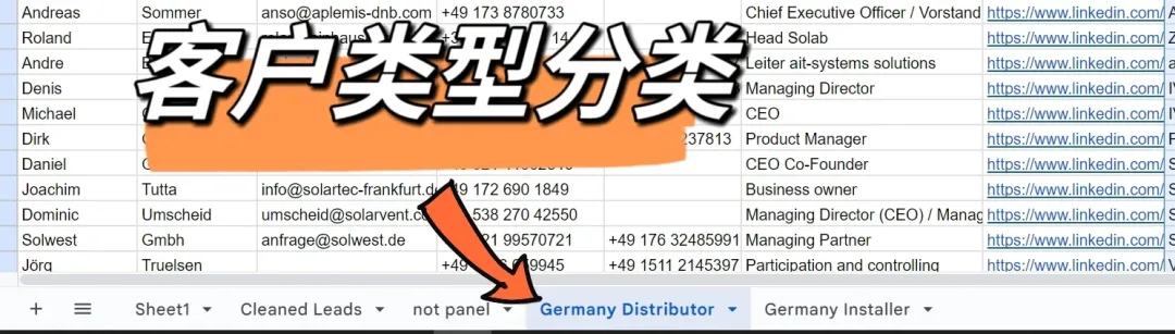 最后一步,你以为完了吗?哈哈哈,这才是重头戏!我们还得对展会上的人进行分类。就拿Intersolar 2024举例子,我们得分清楚谁是Exhibitor(国内的、国外的),谁是Installer,谁是Distributor。