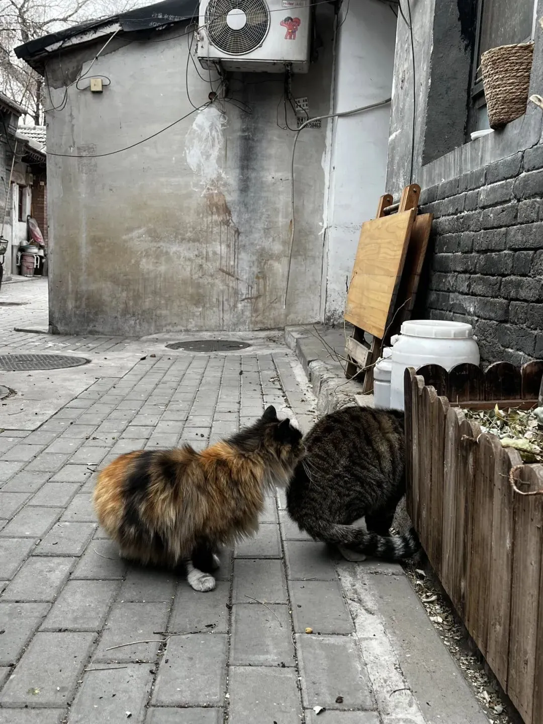 鲁一现在对胡同最深的情感寄托,就是喂养门前的十来只流浪猫。在她原本养的家猫去世后,鲁一就每天期待着流浪猫从屋顶跳下来,她会端详那些警惕而又期待食物的小动物来吃她准备的猫粮。她记得,那只曾从上海、云南一路陪伴她到北京的猫,在生命的最后一段时光里,也喜欢每天走出门外在这个院子里遛弯,或者爬到屋顶,或者自来熟地走进邻居家敞开的门、就地一趟。和鲁一一样,她的邻居们也热心于投喂流浪猫,对这些小动物的共同守护,联结起了史家胡同3号院的老人与新客。