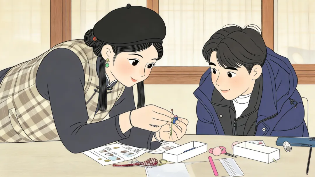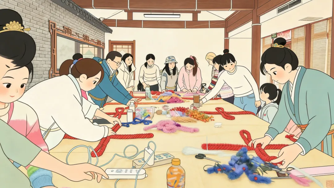 尽管大学专业并非艺术相关,但受骨子里对美术和手工的热爱驱动,现在的果果正在创业,专注于非遗方向。她将手工课程按二十四节气进行了体系化整理,目前,作为校外指导团体导师的她与清华大学学生手工协会展开合作,并在史家胡同博物馆开设了立春绳结等课程,吸引了周边居民和亲子家庭的参与。