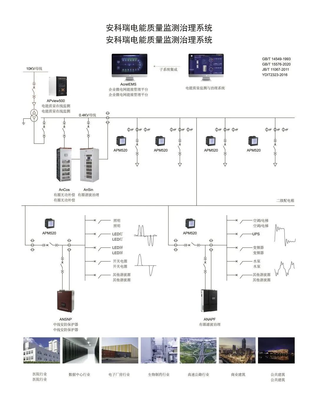 安科瑞电气具备从云平台软件到终端元器件的产品生态体系,目前已有一万多套系统解决方案运行在全国各地,为用户安全用能保驾护航。安科瑞电气提供的解决方案包括变电所运维云平台、安全用电管理云平台、环保用电监管云平台、智慧消防云平台、能源管理云平台、工业企业能源管控平台、远程预付费云平台、餐饮油烟监管云平台、电动汽车/电瓶车充电桩收费管理云平台、电力监控/无线测温系统、电能质量治理系统、电气火灾监控系统、消防设备电源监控系统、防火门监控系统、应急照明和疏散指示系统、智能照明控制系统、医用隔离电源绝缘监测系统等,帮助用户实现能源智能化、可视化、精细化管理,提高用能效率和用能安全,为企业节能降耗和实现能源数字化建设提供数据服务。