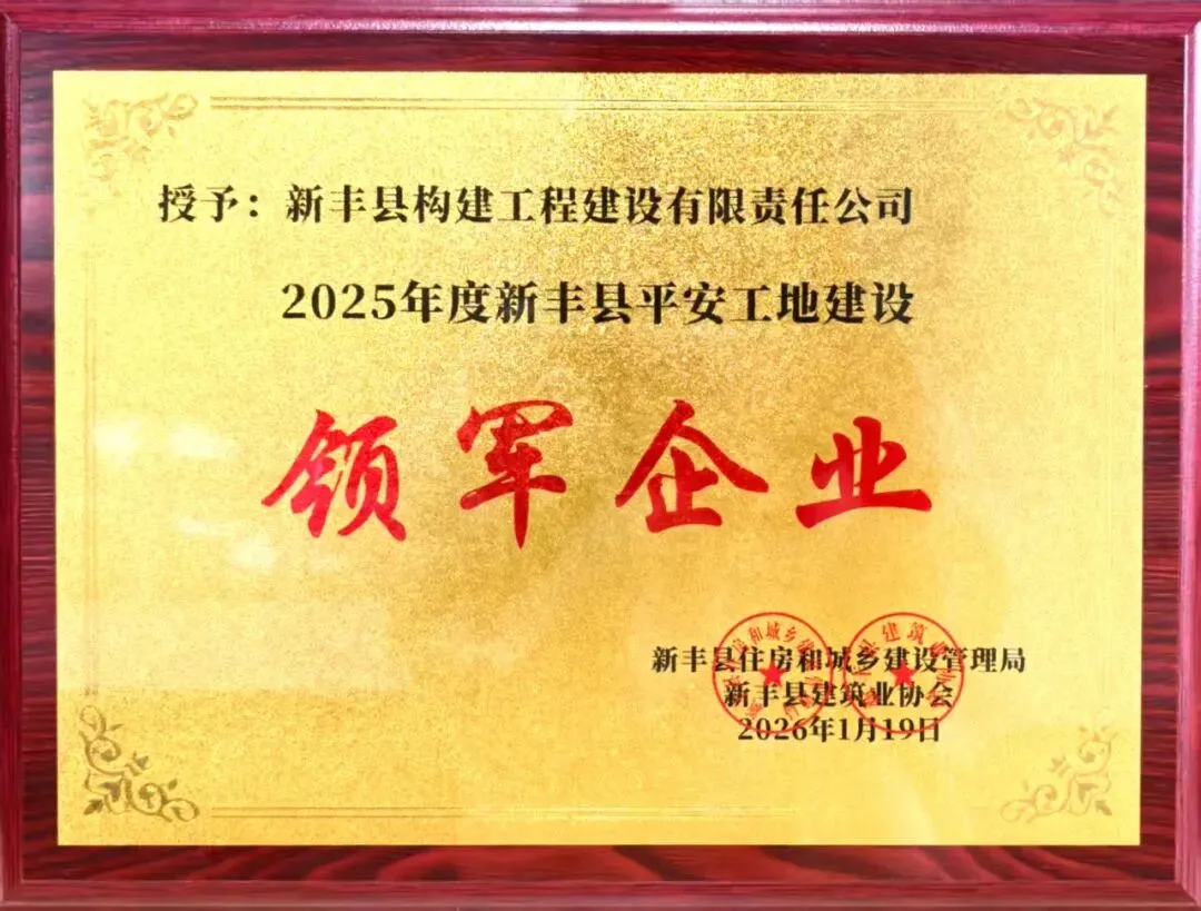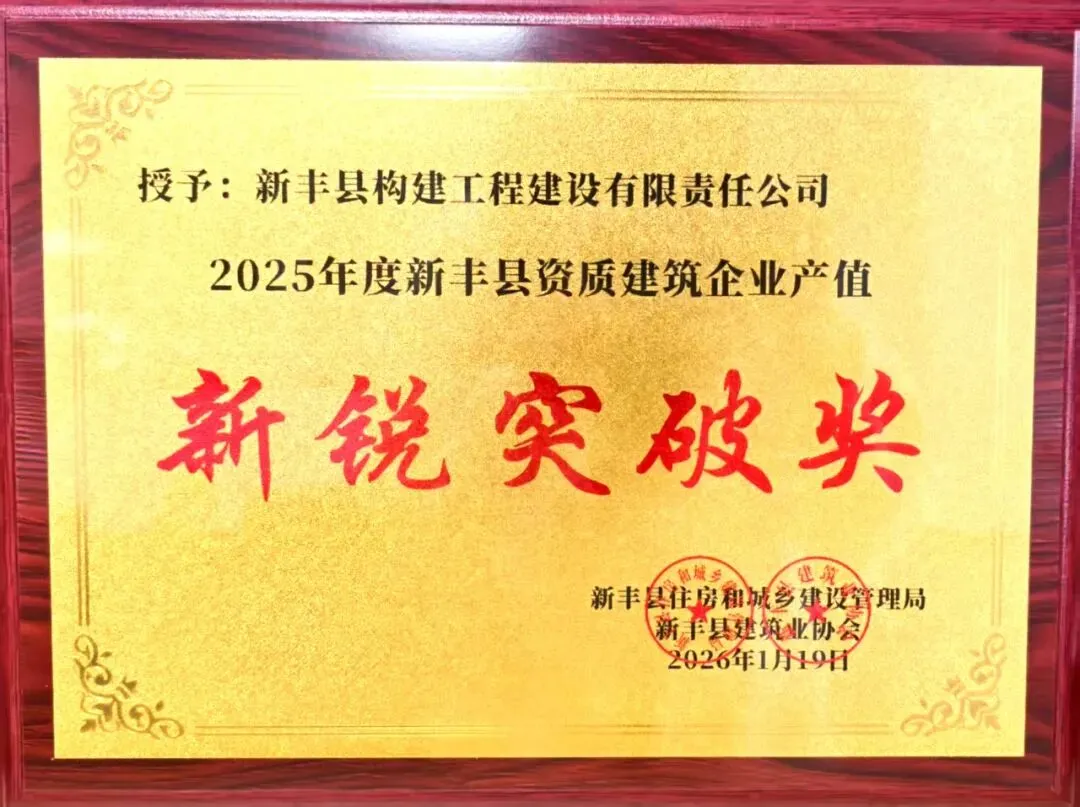 这份来自地方政府的认可之外,构建公司所属新丰子公司捷报再传,成功斩获 “2025 年度新丰县平安工地建设领军企业”“2025 年度新丰县资质建筑企业产值新锐突破奖” 两项殊荣。两项荣誉分别从安全生产与经营发展两大维度,印证了新丰子公司的综合实力:前者是对其安全管理水平的高度肯定,新丰子公司始终坚守安全发展底线,筑牢施工安全防线,打造平安工地建设标杆;后者则彰显了其强劲的经营发展势头,2025 年新丰子公司凭借稳健的经营策略与亮眼的产值突破摘得奖项,为构建公司高质量发展注入强劲动力。