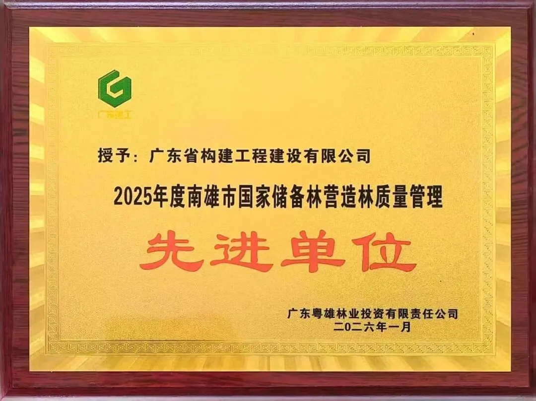 在深耕建筑工程领域屡创佳绩的同时,构建公司在林业工程板块的专业引领力同样持续凸显,公司连续第三年获评由业主单位广东粤雄林业投资有限责任公司授予的 “南雄市国家储备林营造林质量管理先进单位” 称号。国家储备林建设是保障国家木材安全、推进生态文明建设的重要工程,对营造林质量管理有着严苛要求。作为深耕林业工程领域的骨干企业,构建公司始终将施工品质与生态保护放在首位,凭借扎实的技术积淀、严谨的项目管理与精益求精的施工品质,强化全流程管控、抓实关键环节,以实际行动践行 “绿水青山就是金山银山” 的发展理念,这份三连冠的荣誉,既是业主单位对公司林业工程专业能力的高度认可,更是公司彰显林业工程领域引领实力的有力见证。