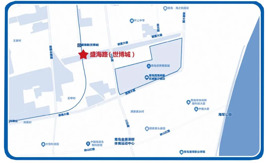 地铁站乘坐地铁8号线,到青岛北站转1号线,井冈山路转13号线,盛海路(世博城)地铁站的-b口出,打车5分钟即可到达世博城国际展览中心。