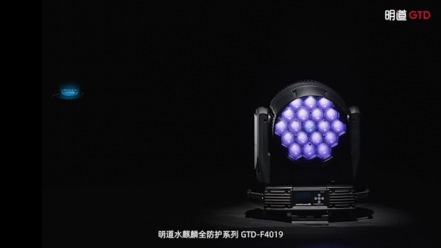 明道全防护系列GTD-F4019 II Wash全天候全防护电脑摇头染色灯,拥有强劲光学系统,采用RGBW四合一光源,光源额定寿命可达50000小时,铺色均匀,颜色饱满纯正;高强性能材质,压铸铝加高强性能塑胶的防水架构,抵御多重环境冲击,无惧极端气候,高温极寒,应付自如。