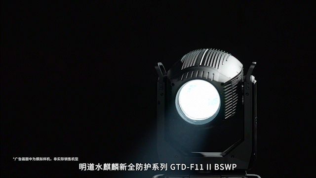 明道全防护系列 GTD-F11 II BSWP全天候全防护四合一电脑摇头灯被誉为明道全防护灯光系列“高配”之选,集切割、图案、光束、染色功能于一体,全新外观轻量化设计,整机重量仅39kg,超静音设计,整机噪音<40dB,超高性能全面升级,光斑角度最小5°,百米级远距离投射,95以上高显色指数,室内外通打,3D立体图案配置,升级版内外双循环散热系统,满足多场景专业用光需求。