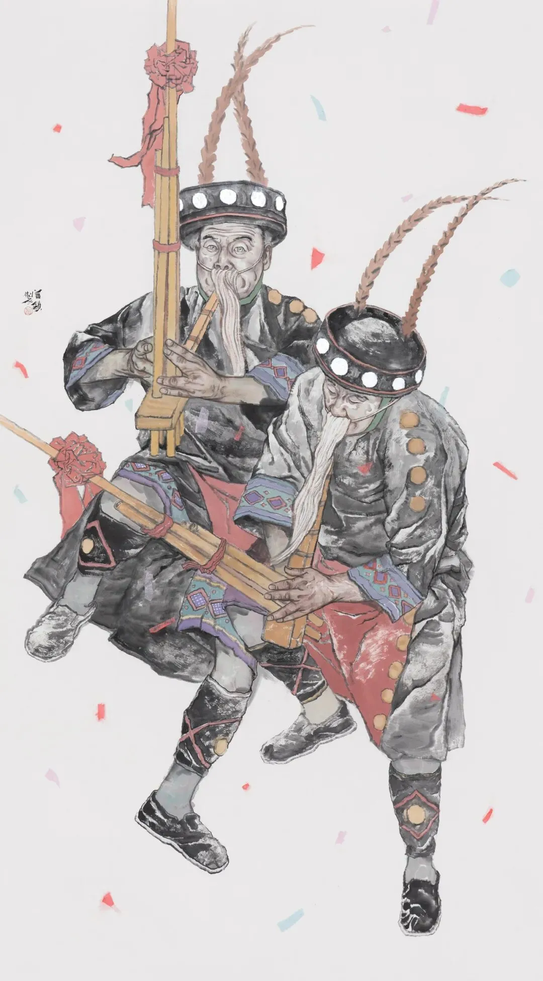 ▲ 苗镇 《大国非遗・苗族芦笙舞》 180×97cm 2026年 国画