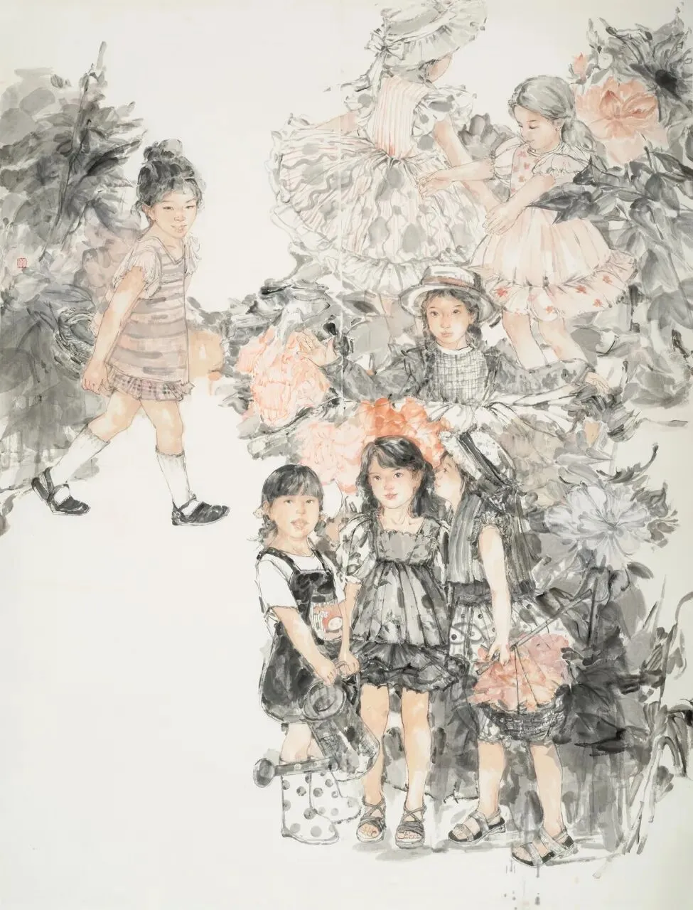 ▲ 李读 《童嬉花影》 220×185cm 2025年 国画
