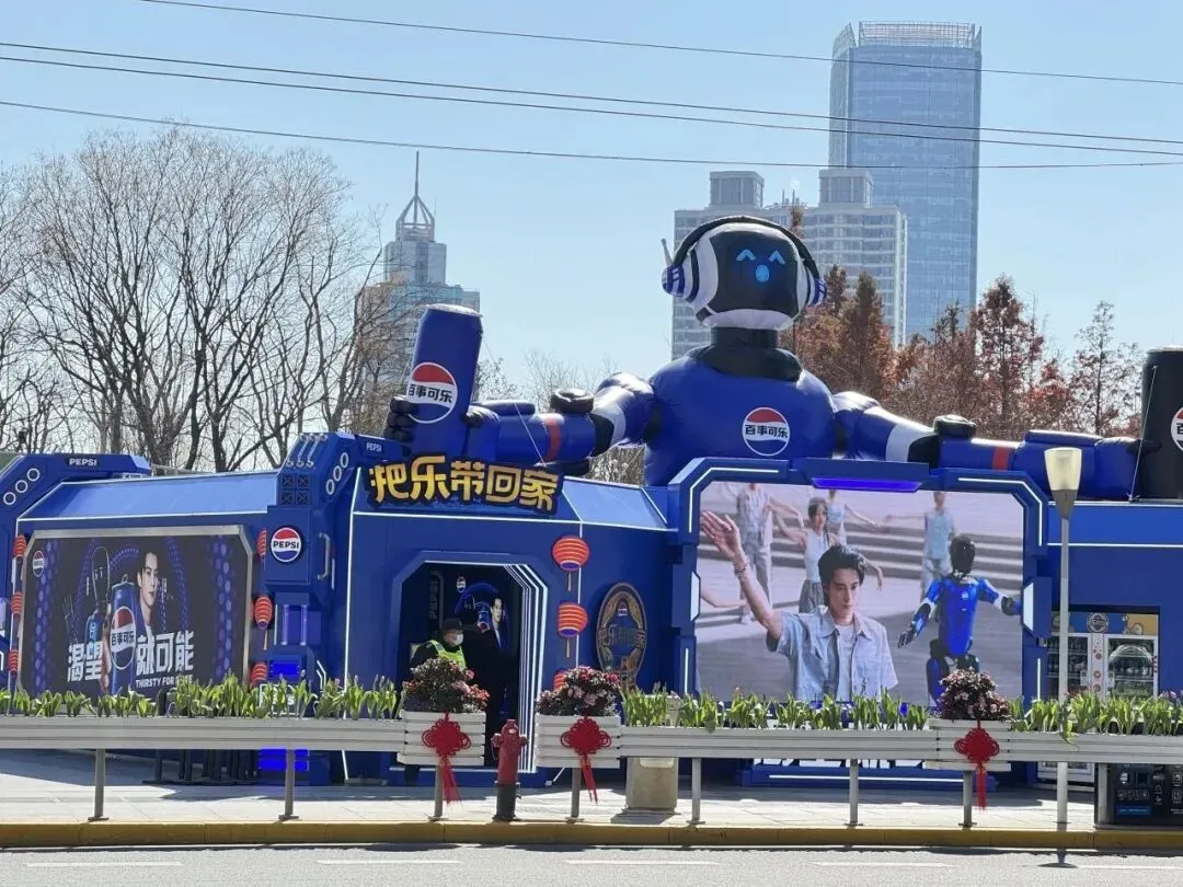 百事可乐新春地标空降南京西路商圈,百事蓝宝机器人现身静安寺广场。