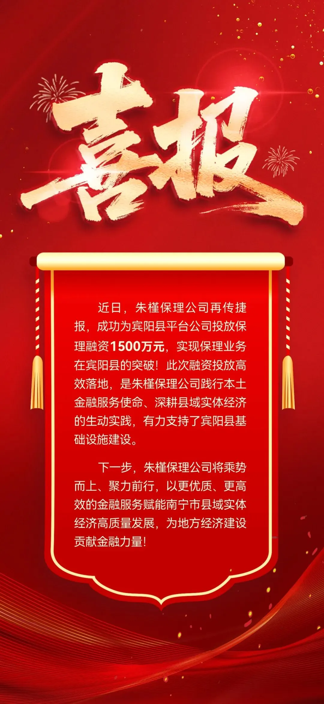 朱槿保理公司成功为宾阳县平台公司投放保理融资1500万元