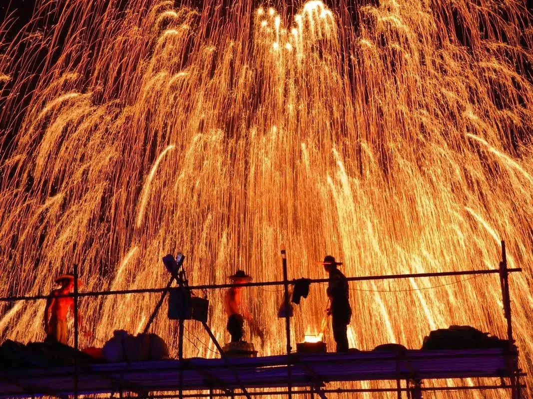 重头戏来啦!文昌塔公园解锁非遗盛宴,千年打铁花震撼登场? ,星火漫天如流星坠落,搭配火壶表演、非遗市集和精彩演艺,每一秒都在冲击视觉!篾匠街积谷路更是氛围感拉满,结合开业商户打造新春场景,提前解锁后续开街惊喜,逛吃逛玩两不误~