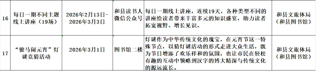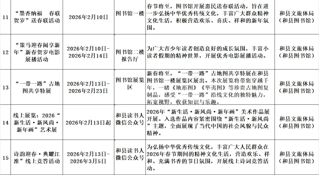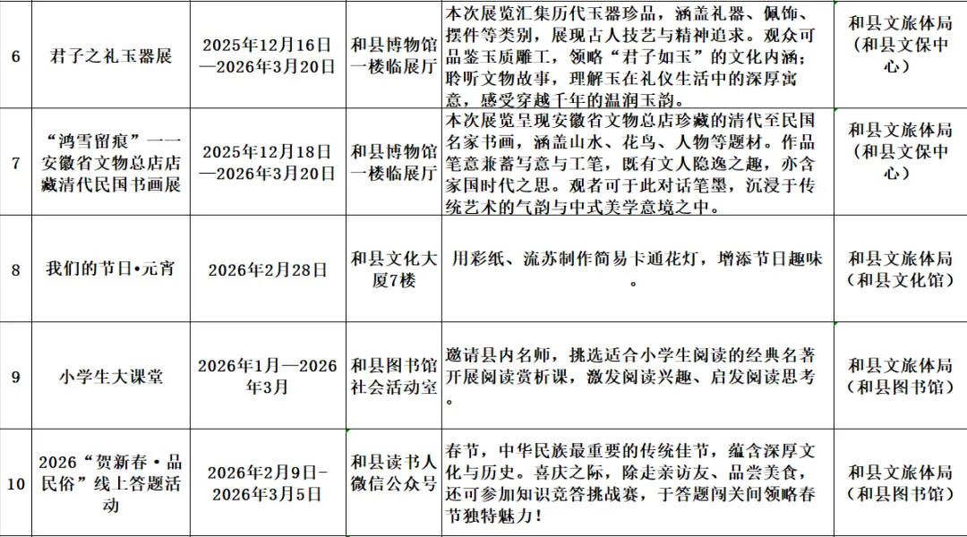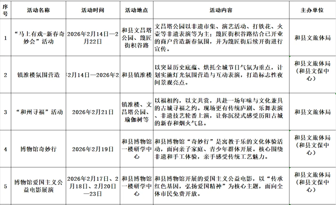 和县2026年春节期间文化旅游活动汇总表