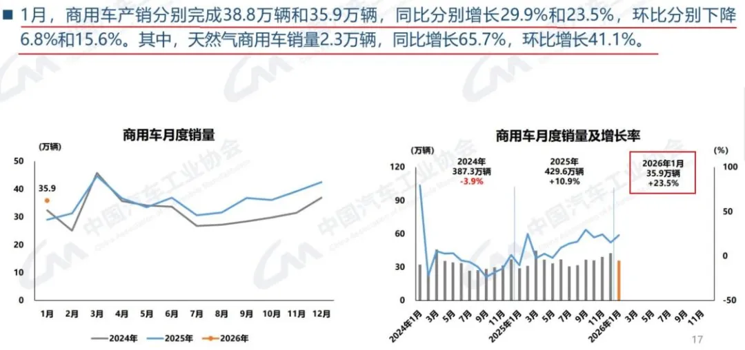 轮胎作为汽车的上游产业,汽车市场的任何起伏将直接影响轮胎行业。我们也看到,1月份商用车的产销的市场继续增长表现良好,新能源车整体平稳。