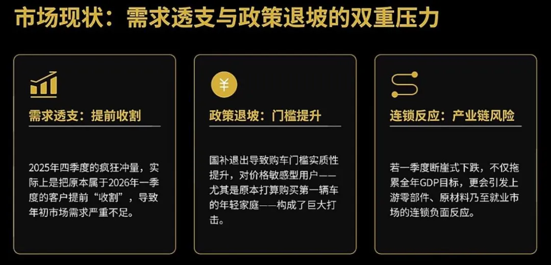 2025年4季度的销售冲量实际上是把原本属于2026年1季度的客户提前完成,而2026年开始随着国补退出,购车门槛提升,对价格敏感的用户构成了冲击。