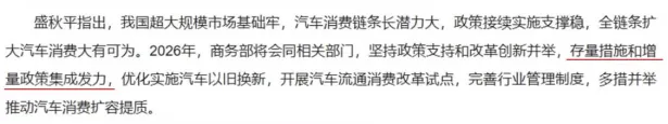 需要关注3月份召开的重要会议前后政策的动向,一旦具体的增量政策细则出台,不仅对汽车行业,2026年的轮胎行业也是极其关键和重要的。