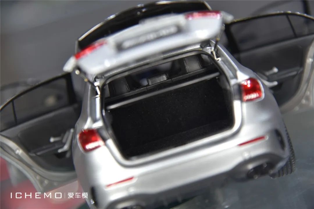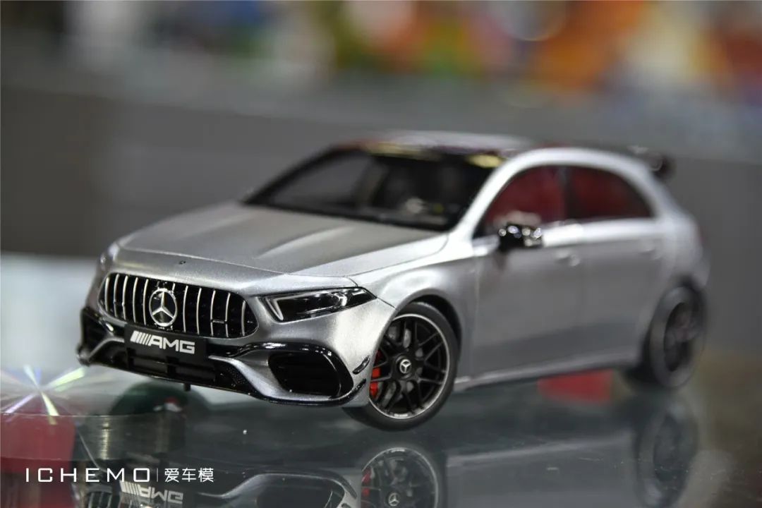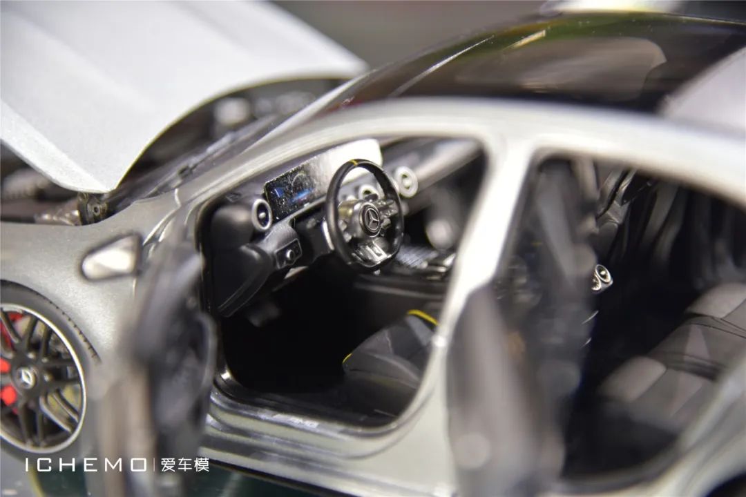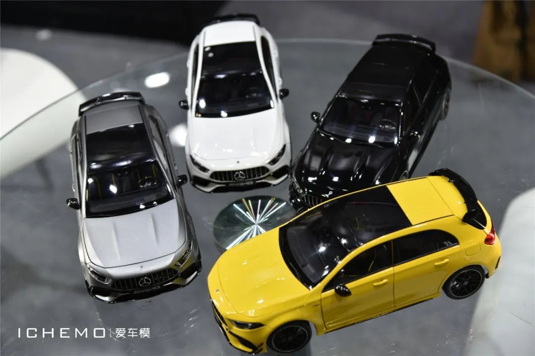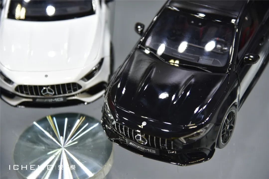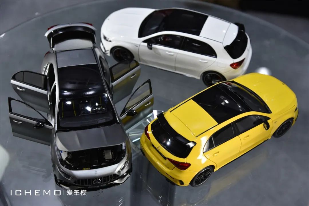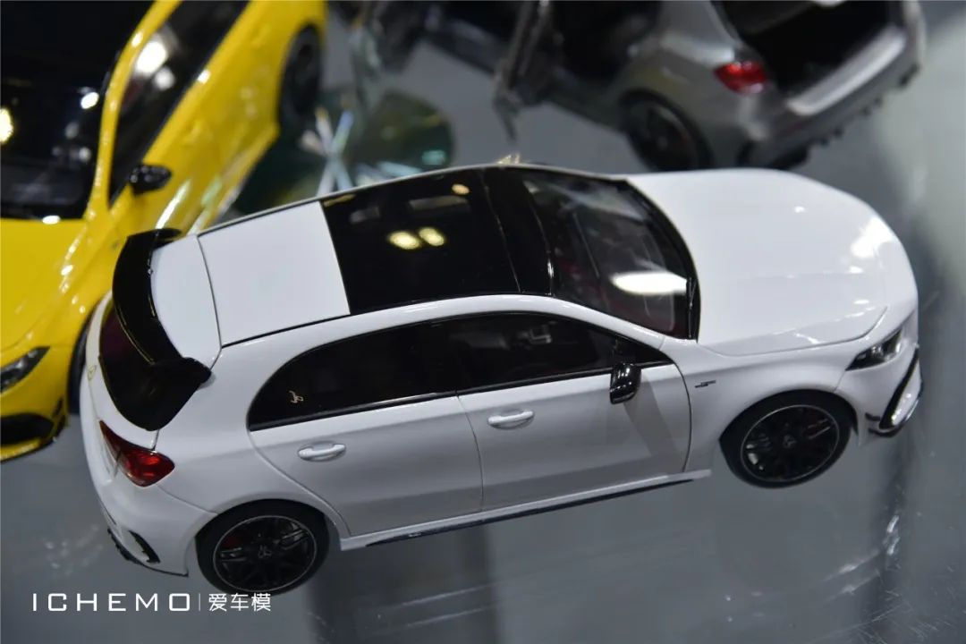 模型为 1:18 合金全开工艺设定:四门/两盖件可开,方向盘件随前轮转向;模型车身配色方面将参考 Mercedes-AMG A 45 S 4MATIC+ Aerodynamic Package 实车方案,目前 NZG 展示了(消光灰、黄、白、黑)四款颜色。值得一提的是,爱车模 ICHEMO 会在未来联名 NZG 推出定制配色和涂装款式!