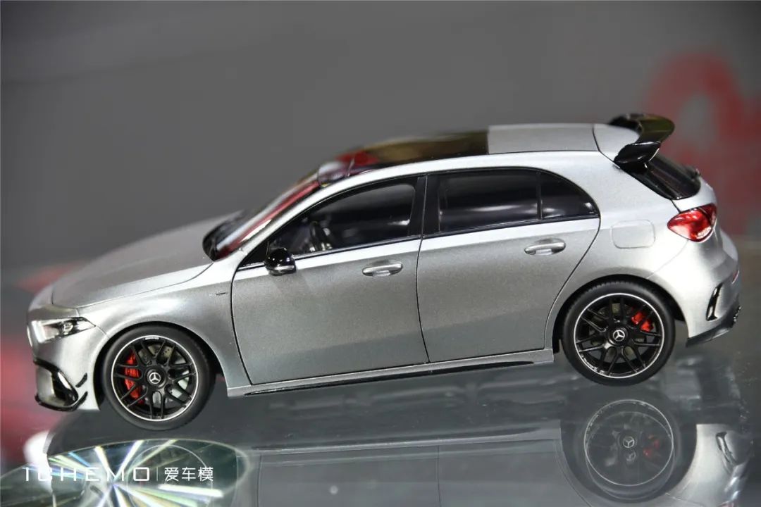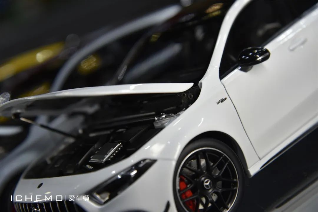 从模型车身上的空动套件不难看出,这是还原了带 Aerodynamic Package 的 AMG A 45 S 车型,相信也是喜欢这款 “AMG 小钢炮” 的同好们期待的款式。