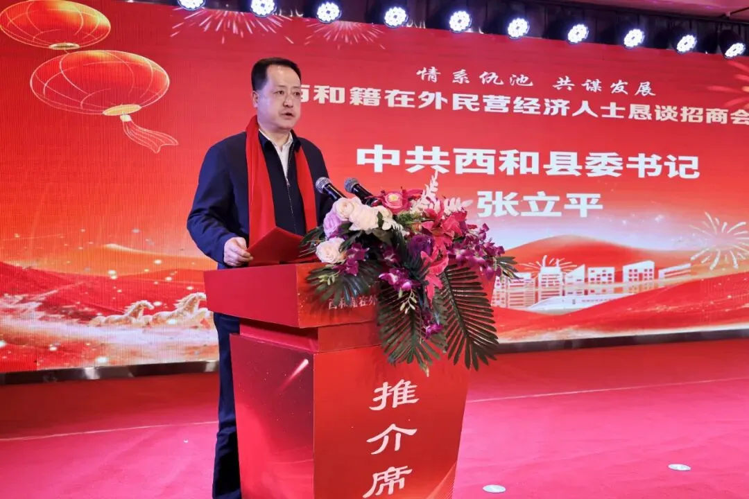 张立平在致辞中代表县委、县政府,向各位乡贤、企业家的到来表示热烈欢迎,向长期以来关心支持西和发展的社会各界人士致以衷心感谢。他说,西和文脉绵长、资源富集、机遇叠加,正处在高质量发展的关键时期,县委、县政府始终把招商引资、民营经济发展作为强县富民的重要抓手,持续优化营商环境、强化要素保障,为大家在西和投资兴业保驾护航。他真诚期盼广大在外民营经济人士常回家看看、多回乡兴业,把先进理念、优质项目、宝贵资源带回西和,携手共创仇池大地发展新辉煌。