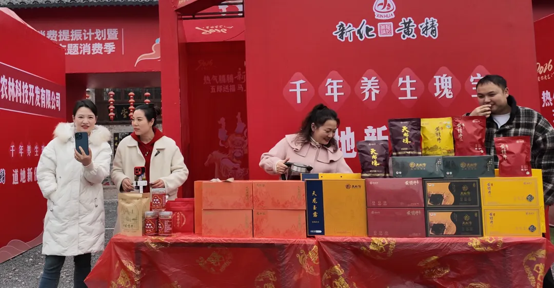 2月14日,新化黄精专场推介会进入第三天,向东古街大舞台人声鼎沸、热闹非凡。现场以趣味互动、文艺展演结合网红直播等形式,全方位推介新化黄精,既丰富了游客和市民的新春生活,也有效提升了本土特色农产品的知名度。