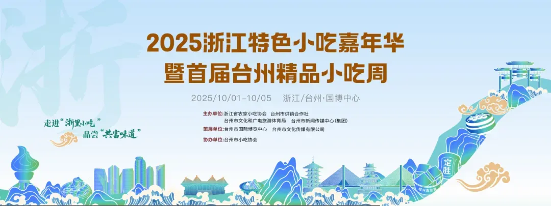 本次活动由浙江省农家小吃协会、台州市供销合作社、台州市文化和广电旅游体育局、台州市新闻传媒中心(集团)主办,台州国际博览中心、台州市文化传媒有限公司联合策展,台州市小吃协会协办,以“走进‘浙里小吃’品尝‘共富味道’”为主题,在这里,你可以沉浸式解锁“舌尖上的浙江地图”——非遗小吃、老字号招牌、地标性美味,一站式品尝到浙江独具风味的美食,感受浙江各地的饮食文化魅力。