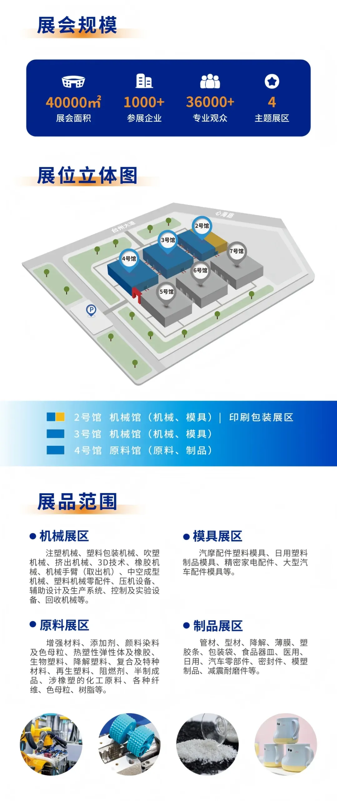 2025第22届浙江(台州)塑料交易会将于2025年10月21—23日在台州国际博览中心(椒江)举办。展会聚焦“新产品、新技术、新设备”三大核心板块,涵盖机械、模具、原料、制品等全产业链产品,构建一站式贸易对接生态体系,推动供需精准匹配,以前沿技术展示与商贸洽谈联动模式,实现高效交易,助推产业升级。