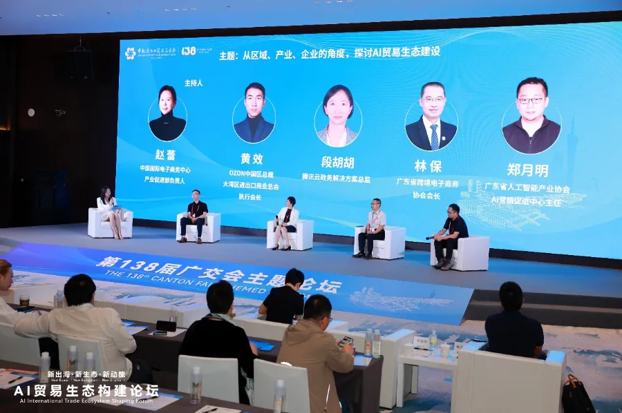 10月18日,第138届广交会AI贸易生态发展论坛在广交会堂第二会议室成功举办。论坛以“新出海·新生态·新动能——AI贸易生态构建者”为主题,由中国对外贸易中心集团有限公司主办、中国国际电子商务中心(公司)协办。论坛汇聚政府代表、企业高管、专家学者及行业嘉宾百余人,共同探讨人工智能技术赋能全球贸易的新路径。