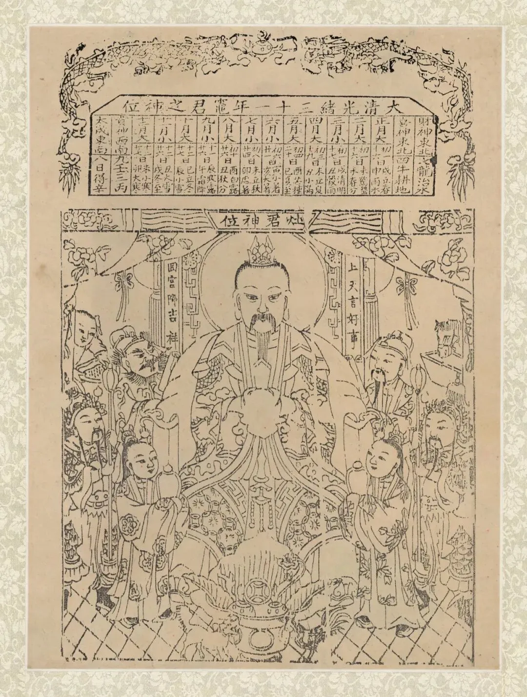 传说“灶神”是玉皇大帝封的“九天东厨司命灶王府君”,故又称“灶君”“灶王”“灶王爷”“东厨司命”等,专职负责管理凡间各家灶火。尽管中国古代很早就有了祭祀灶神的习俗,但一直到魏晋以后,灶神才有了姓名。隋杜台卿《玉烛宝典》引《灶书》称,“灶神,姓苏,名吉利,妇名博颊”。唐李贤注引《杂五行书》又称,“灶神名禅,字子郭,衣黄衣,披发,从灶中出”。显然,灶神初为女神。而清代的《敬灶全书》则称:“灶君,姓张,名单,字子郭,当属男神。”而现在民间供奉的东厨司命定福灶君,则是一对老夫妇并坐,即灶王爷和灶王奶奶。