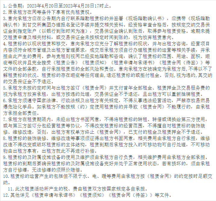 公告期内,产生两个及以上符合条件的意向承租方的,采取网络竞价方式确定承租方;只产生一个符合条件的意向承租方的,按挂牌价与意向承租方报价孰高原则直接签约。