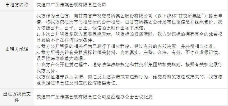 敦煌市广至传媒会展有限责任公司房产租赁项目