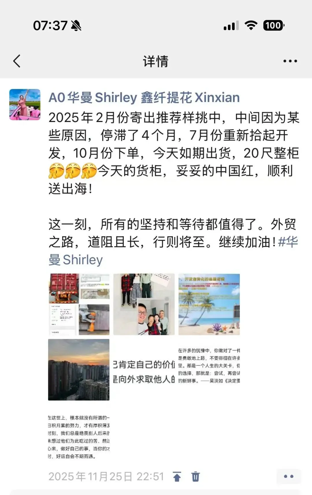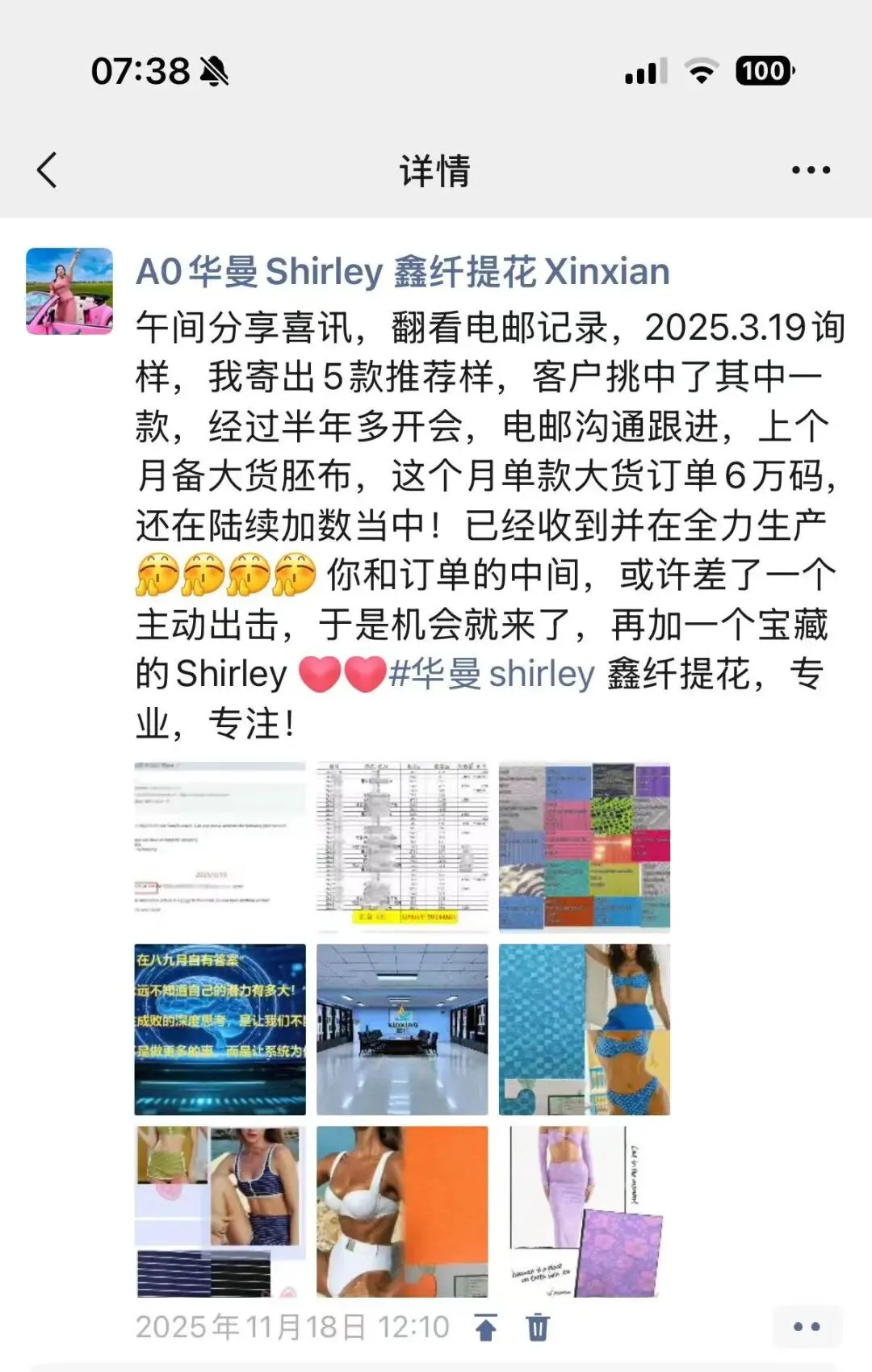 从2024年起步到2025年爆发,我坚持在社媒平台更新工厂实景、解读面料干货。起初,流量寥寥无几,甚至有人问:“做纺织的拍视频有用吗?”2025年,答案来了。 好几位从未谋面的国外客户,因为刷到了我解析面料工艺的视频,主动发来询盘。通过视频展示工厂的透明度,我们跳过了漫长的信任建立期,直接进入成交。这份坚持,让我深刻体会到了,你的专业,需要被全世界“看见”。在纺织圈,有人在等风来,而我在通过镜头造风!