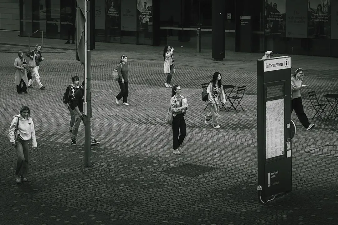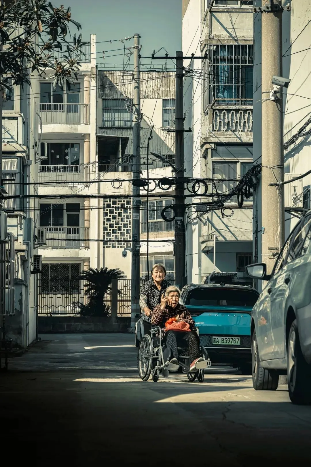 但真正的转折,始于她将镜头从远方收回,投向街巷与人。老城余温、市井侧影、步履痕迹——这些曾被宏大叙事忽略的日常,成为她新的注视对象。她并未因题材之变而松懈对画面结构的追求,而是将这几年训练的素养内化为一种更为节制的语言:以线条牵引叙事,以光影划分情绪,让秩序退居幕后,成为情感悄然浮现的支架。