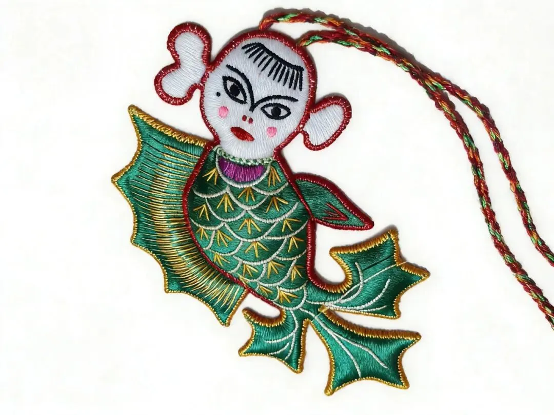 《绵绵瓜瓞与中国本原哲学的诞生》一书中说道:“在以龟、蛇、鱼、蛙为图腾崇拜的黄帝氏族文化发祥地陇东、陕北、晋西黄土高原流行的抓髻娃娃纹样中,阴阳蛇相交的双蛇娃娃、双龙娃娃、双蟾娃娃、双鱼娃娃等,均是双鱼娃娃的多种变体,其原型就是6000年前出现在这一地区的半坡型仰韶文化彩陶图案双鱼人面。”阴阳双鱼相合出生主宰宇宙万物的造物主便是抓髻娃娃。