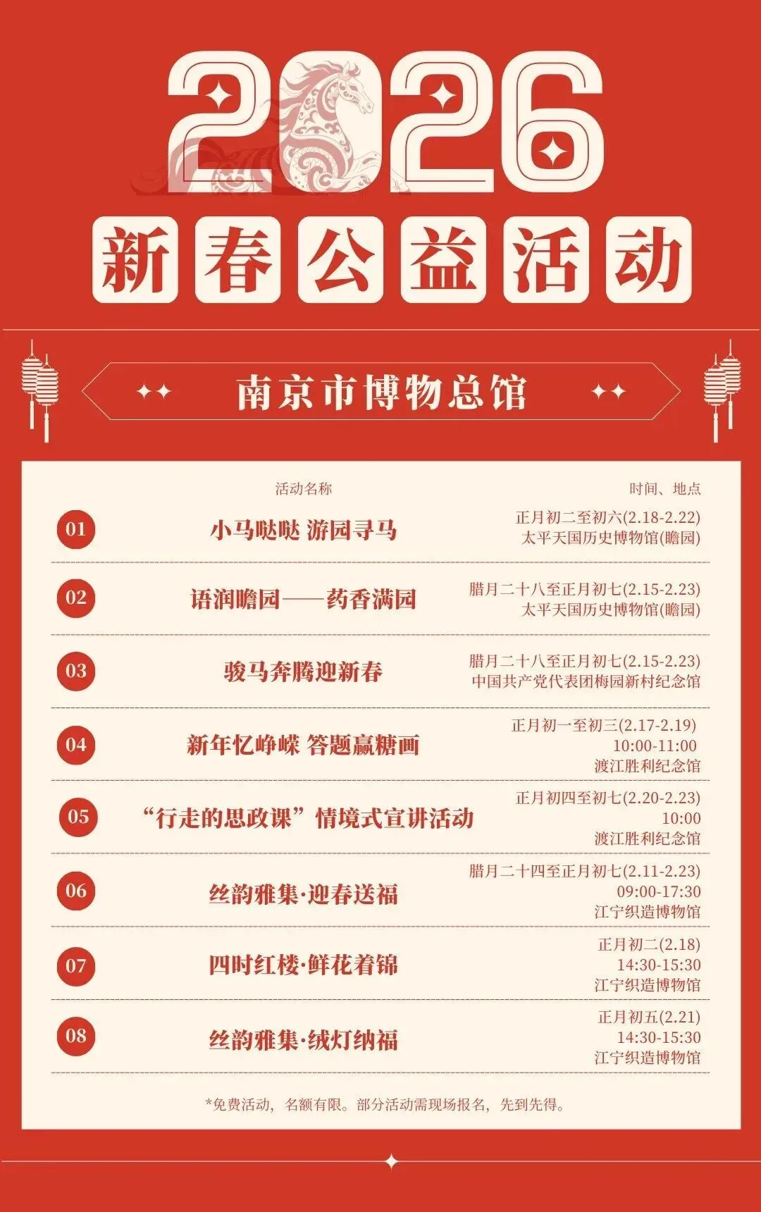 腊月二十八至正月初七(2.15-2.23),来梅园新村纪念馆解锁新春文创惊喜啦!“大爱无疆——周恩来邓颖超与孩子们”展览的暖心周边、2026马年生肖主题新春文创齐上新;更有多枚特色印章免费盖,可亲手打造您的专属新春纪念。