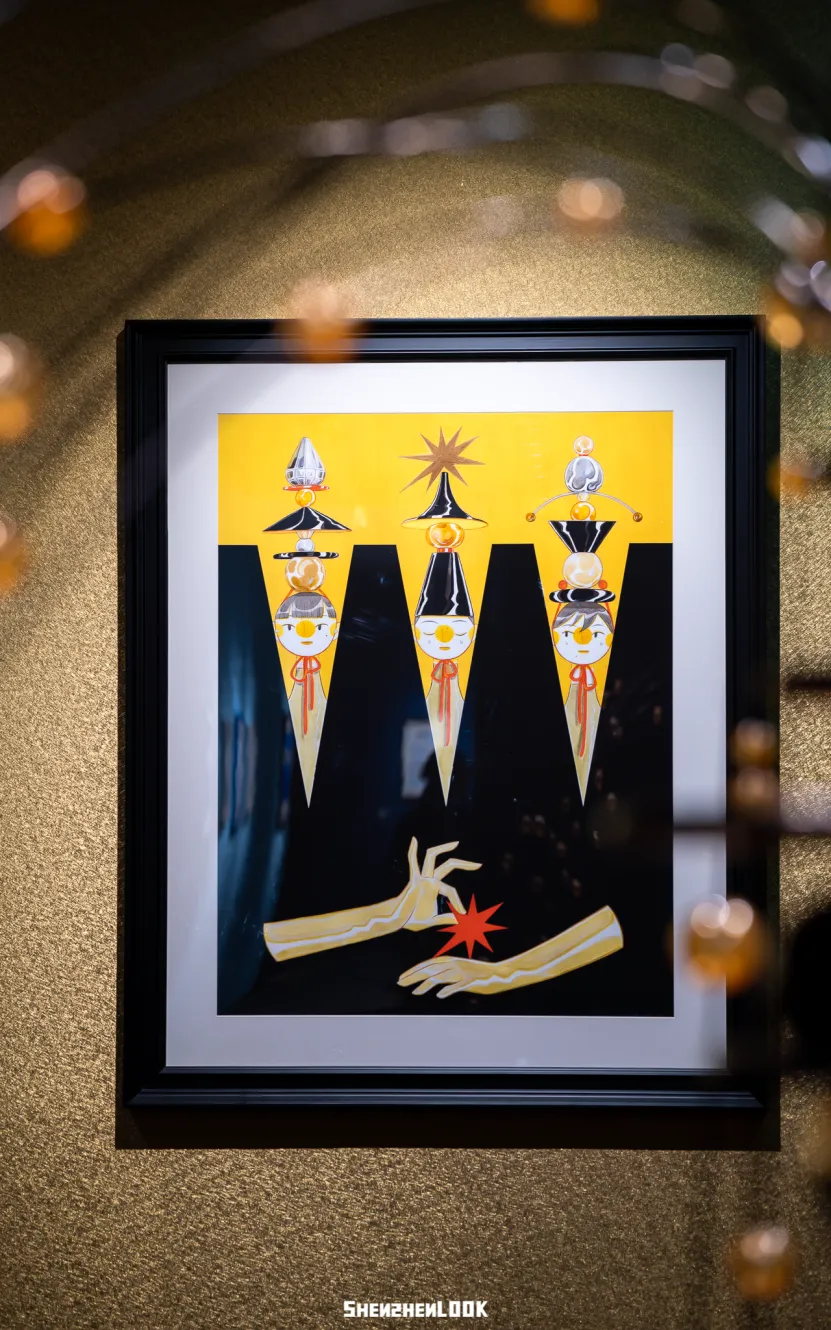 穿过蔚蓝梦境,孔玲娜一片璀璨的“黄金之都”醒来”,这个空间以珠宝为视觉灵感,被蚂蚁喻为一杯“威士忌”,我们都觉得太过贴切了。这些画作融合了宋制服装的雅致与珠宝的璀璨,也将中式留白与当代想象进行融合碰撞。