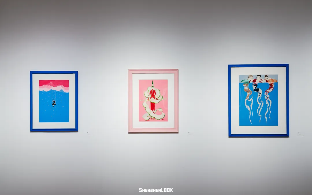 向梦境更深处漫游。孔玲娜的意识潜入一片无限的蔚蓝秘境。蚂蚁说如果把红色区域比作一杯浓茶,那么这里就是清爽的气泡水。这里的作品多是她在22-23年创作的,初心是希望大家能在她的画作中得到平静。