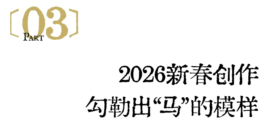 从这里启程,进入孔玲娜笔下 “神秘东方”。这片空间里,传统纹样融入了当代的表达。为呼应马年,蚂蚁还特别为本次展览创作两幅马主题作品。