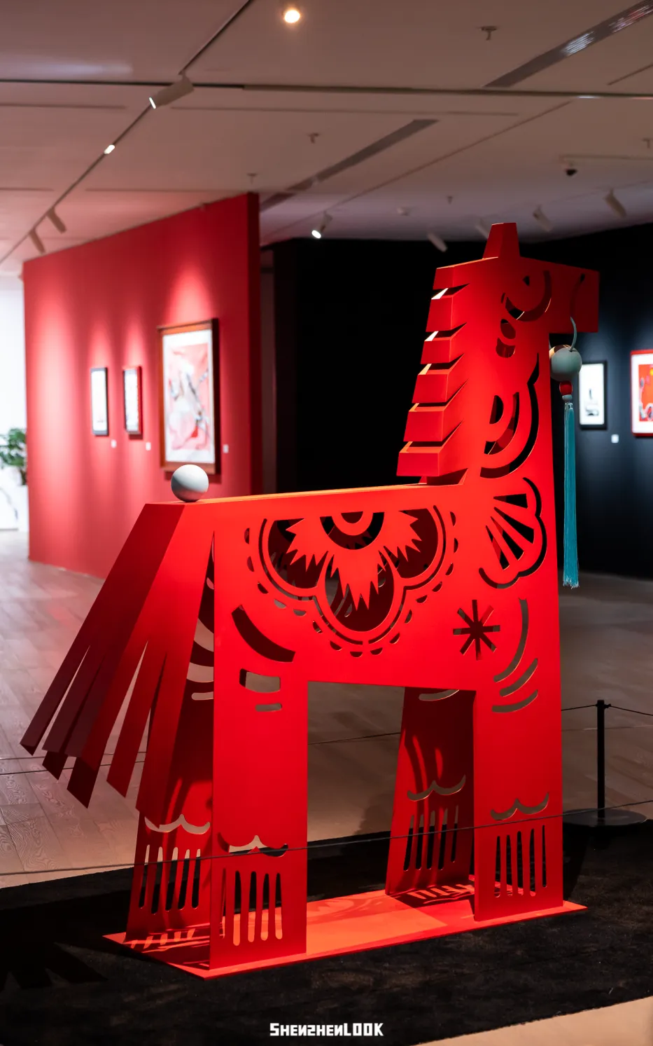 除此之外,展区内还有马主题的立体装置,其中立体剪纸马融合了中国传统剪纸文化,打破了平面艺术的边界,让二维的画作变得可触摸、可互动。与之呼应,另一组装置同样从原画中拆解出不同部位的元素进行重组,实现了从平面到空间的立体形态。