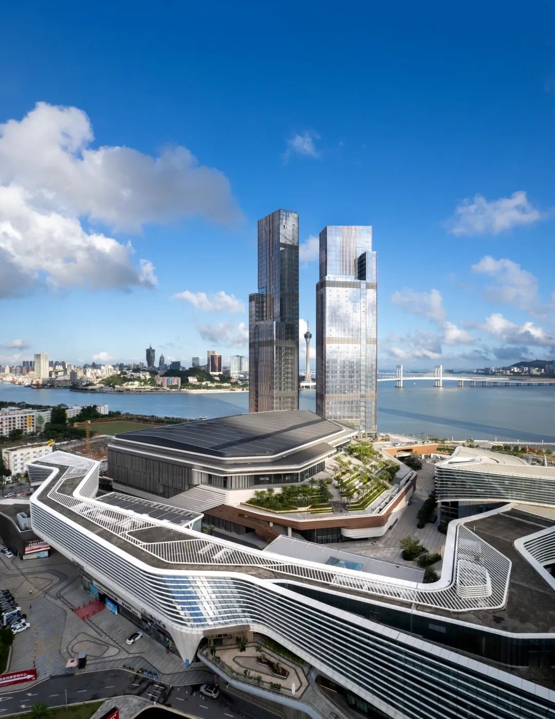 在2017年完成总建筑面积约 69 万平方米的珠海国际会展中心一期工程后,10 Design 赢得了二期项目的国际设计竞赛。设计以一条蜿蜒曲折 1,200 米的“城市绸带”串联城市与海滨,项目各功能区及公共空间,以自然流动的形态合围出项目的中央广场,为珠海市民和来往访客创造了一充满活力的滨水目的地。